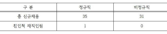 "공공기관 채용제도 개선대책"의 일환으로 실시한 2025년 4분기 신규채용자들에 대한 친인척 조사결과를 아래와 같이 공지합니다.