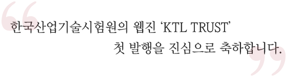 앞으로도 기업의 든든한 동반자로 함께 해 주시기 바라며, 다시 한 번 ‘KTL TRUST’의 새 출발을 축하합니다.