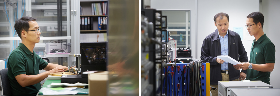 저희 전기전자표준센터는 전기전자분야 KOLAS 교정업무를 수행중이며, 현재 전기전자분야의 국내 최고의 기술력과 교정능력을 보유하고 있습니다. 특히 교정관련 시스템 개발을 통해 2012년 이후 7건의 특허를 등록, 출원하고 있으며, 관련기술을 교정기관 및 산업계에 기술이전 하였습니다. 뿐만 아니라 국내 교정기관 중 유일하게 안테나분야, 용접분야 등의 기관지정을 통해 관련 기업을 지원하고 있습니다.