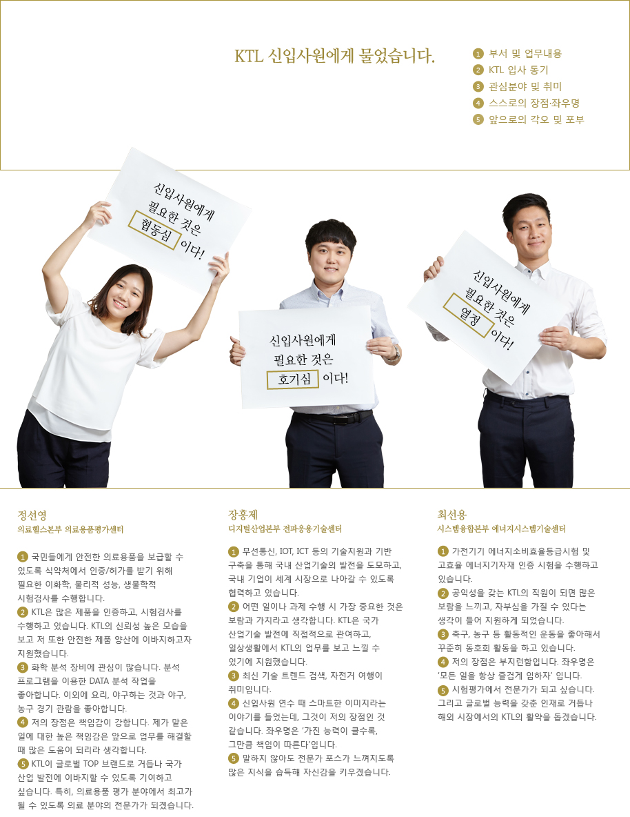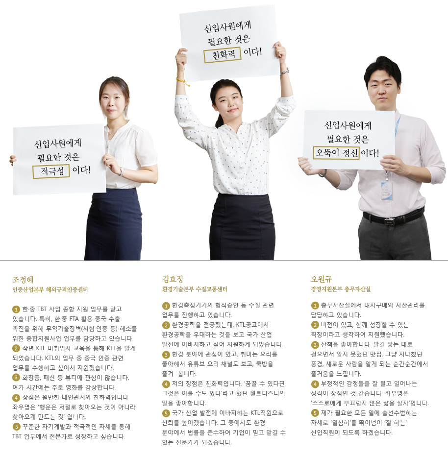 인생의 새로운 출발을 맞이한 KTL 8명의 신입사원을 만나 앞으로의 당찬 포부를 들어봤다.