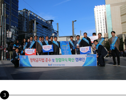 한국산업기술시험원은 확고한 반부패·청렴실천의지를 전파하고, 청렴실천에 대한 각오와 결의를 새롭게 다짐하기 위해 10월 10일 전 직원이 참석하여 반부패·청렴 실천 결의대회를 진행했다. 이날 행사는 청탁금지법 시행을 앞둔 시점에서 전 직원들이 법과 원칙을 준수하고, 누구보다 앞장서서 청렴을 실천할 것을 다짐하고자 마련됐다. 뿐만 아니라 청탁금지법 시행에 편승하는 관행적 부정·부패를 근절하고자 30일간 공직비위 특별 신고기간을 지정하여 운영하고, 자체 특별점검을 실시하는 등 부정·부패 척결을 위한 활동을 벌였다. 또, 일반시민 및 방문 기업체 직원을 대상으로 청탁금지법을 알리는 길거리 캠페인을 전개하기도 했다.