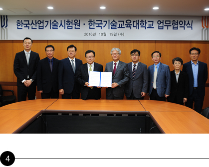 한국산업기술시험원이 기술인력을 양성하고 대학생 취업지원을 위하여 중부권 산학협력 특성화 대학인 한국기술교육대학교와 업무협약을 맺었다. 이번 협약은 현장중심 기술인력 양성 및 연구분야의 시너지효과 창출을 목표로 ▲연구·시험인력 교류 및 코리아텍 학생 인턴십 지원 ▲미래성장 동력확보를 위한 공동연구 수행 ▲유망 중소기업 기술혁신을 위한 공동워크숍 개최 등의 내용으로 이루어졌다. KTL은 인턴십 프로그램을 통해 코리아텍 학생들의 직무능력을 배양하여 취업에 있어 도움을 줄 수 있도록 적극 지원할 계획이다. 아울러, 양 기관은 산학연 협력을 통하여 중부권 지역 중소기업에 대해 다양한 기술지원을 할 예정이다. KTL 이원복 원장은 “코리아텍과의 이번 협약을 통하여 청년 취업을 지원하고 지역산업이 한층 더 발전 할 수 있도록 최선의 노력을 다할 것”이라며 “나아가 대한민국 국가산업의 새로운 원동력이 되길 바란다”고 밝혔다.