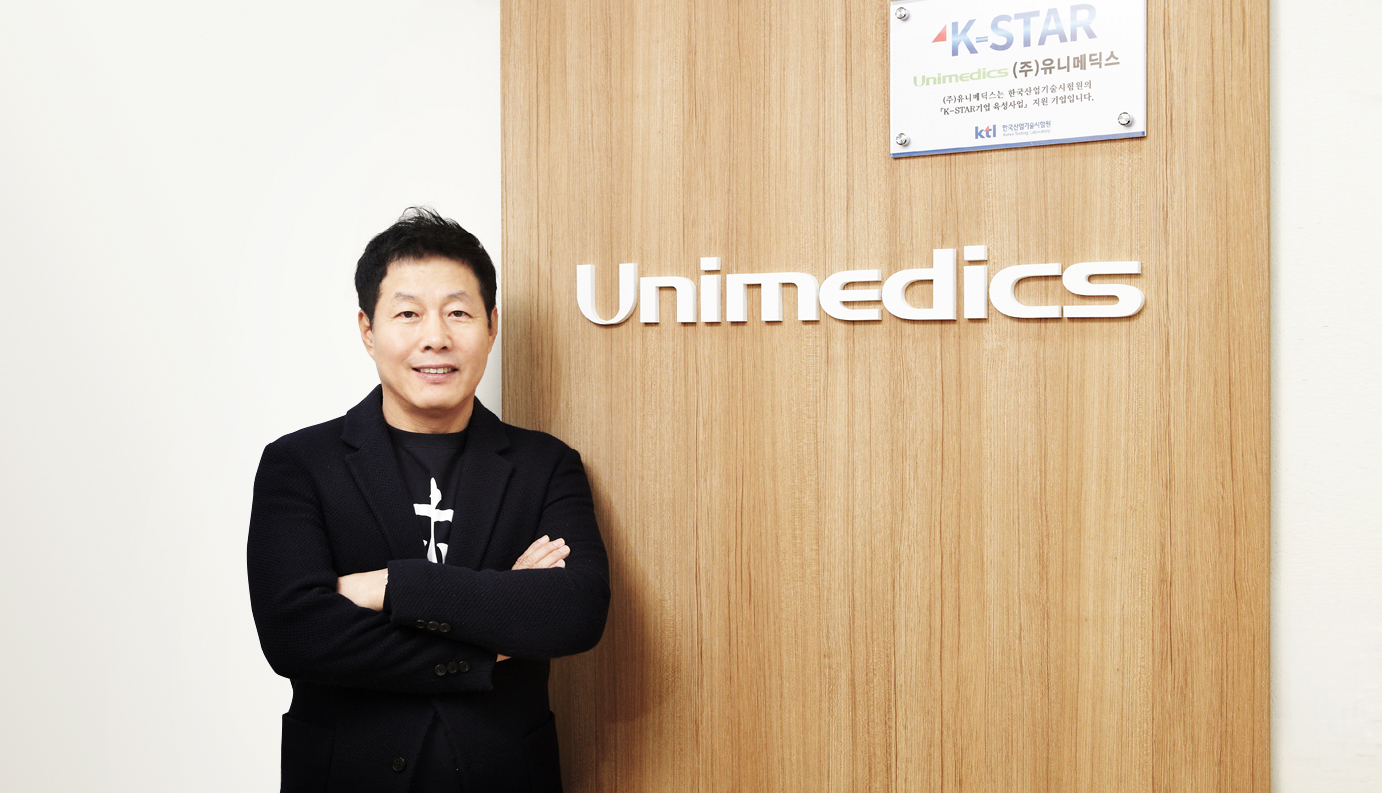 2005년 6월 22일, KTL 서울지역본부 옆에 새 이웃이 생겼다. 바로 (주)유니메딕스 생산 공장이다. 인근에 위치하다보니, 인허가 등에 대해 KTL과 더 많은 소통이 가능했고, 신제품 출시에 관한 시험부터 기술문서 심사까지 원활하게 진행해왔단다. 이후 KTL의 기업육성사업인 ‘K-STAR'에 선정되기까지, 그 인연이 보통이 아니어 보인다. 바야흐로 100세 시대! 세계 의료기기시장 어디에 내놓아도 자신 있는 제품을 배출해내는 (주)유니메딕스. 그들의 기술이 어떤 곳에서 환자를 웃게 하는지, 직접 들어보자.