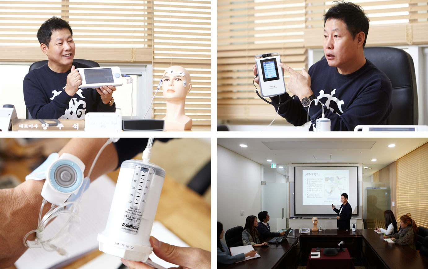 “마취심도 모니터링 장비는 프로포폴 부작용을 최소화하고자 만들어졌어요. 일반적으로 10cc정도를 투약하지만 환자 상태에 따라 그 정도가 천차만별이거든요. 어떤 환자는 일반적인 양을 넣어도 호흡곤란증세를 일으키죠. 때문에 뇌파를 통해 환자 상태를 0에서 99까지 수치로 나타낸 거예요. 20 이상이면 깊은 마취 상태에 도달한 거고, 그땐 투약을 중단하고 수술을 시작하면 돼요. 40에서 60이면 일반적인 마취 상태인데, 수치가 70 이상일 경우 환자가 각성상태로 깨어날 수 있어요. 아주 위험하죠. 의식이 깨어있으니 환자가 고통을 다 느끼지만 몸은 마취돼 있으니 말은 할 수 없는… 수술 상황을 환자가 모두 인지하는 상황을 방지하기 위해 개발했어요. 이 장비는 세계적으로 네 번째 개발되었어요. 이 제품은 이란을 비롯한 해외 각국에서 상용화되고 있습니다.”