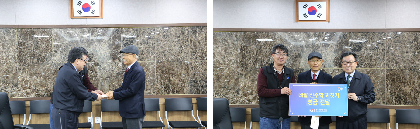 모금된 성금을 전달하는 현장에는 이원복 KTL 원장, 최종두 노조위원장, 김영기 네팔 진주학교 짓기 모임 상임대표가 참석해 기쁨을 함께했다.