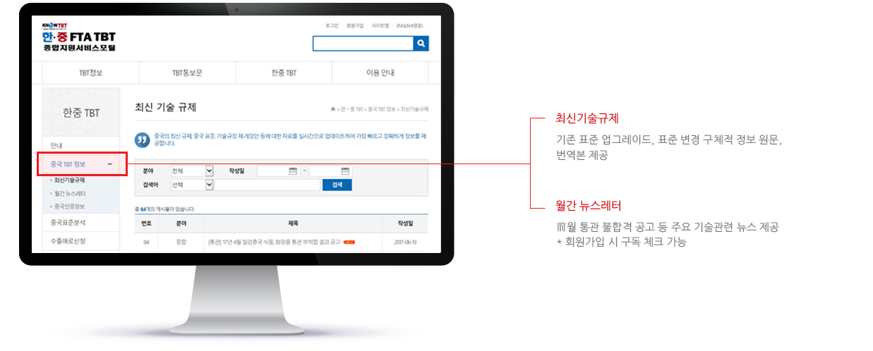 Know TBT 포털에서 월간 뉴스레터와 최신 기술규제 확인 가능