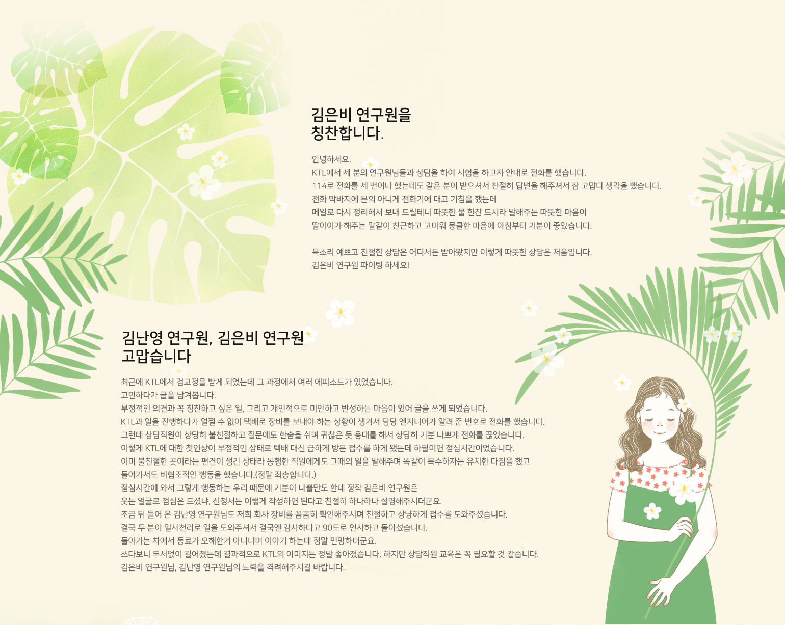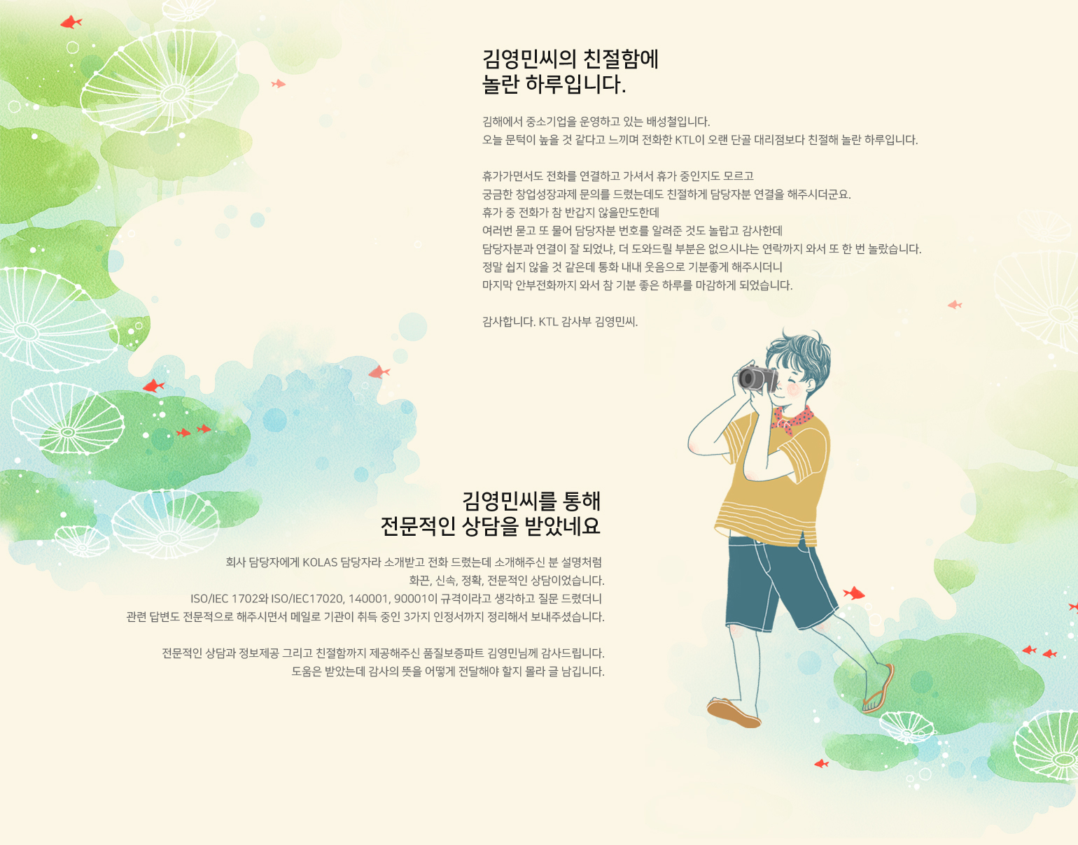 KTL에서 고객감사편지를 가장 많이 받는다고 들었습니다. 비결이 뭐라고 생각하세요?