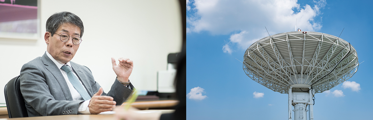 우주 시대가 머지않았다고 많은 사람은 말하지만, 사실 우리에게는 아직 낯설다. 인공위성도 그렇다. 하지만 쉽게 설명하자면 지구와 소통하는 것이 인공위성이고, 인공위성과 소통하기 위해 인공위성연구소가 필요한 거다. 사람과 지구 그리고 인공위성. 그 속에서 열심히 소통하기 위해 오늘도 환한 미소로 인공위성에 관해 설명하는 인공위성연구소 권세진 소장.