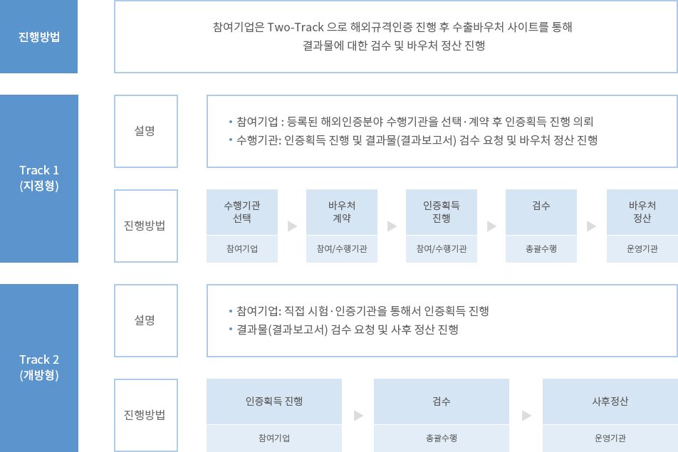 | 공고일 | 2018. 1 | 2018.6(중) | 1차 해외인증분야 수행기관 공고·모집·평가는 총괄수행(KTL)진행 |