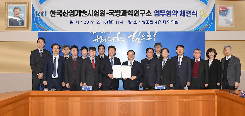 한국산업기술시험원은 2월 18일 국방과학연구소와 함께 민·군 간 시험평가 업무교류와 기술협력을 위한 업무협약을 체결했다. 이번 협약으로 국내 유일 공공 종합시험인증기관과 국방 분야 전문 연구기관의 협력이 한층 강화돼 우리나라 국방기술 신뢰성 제고와 품질 향상에 큰 역할을 할 것으로 기대된다.