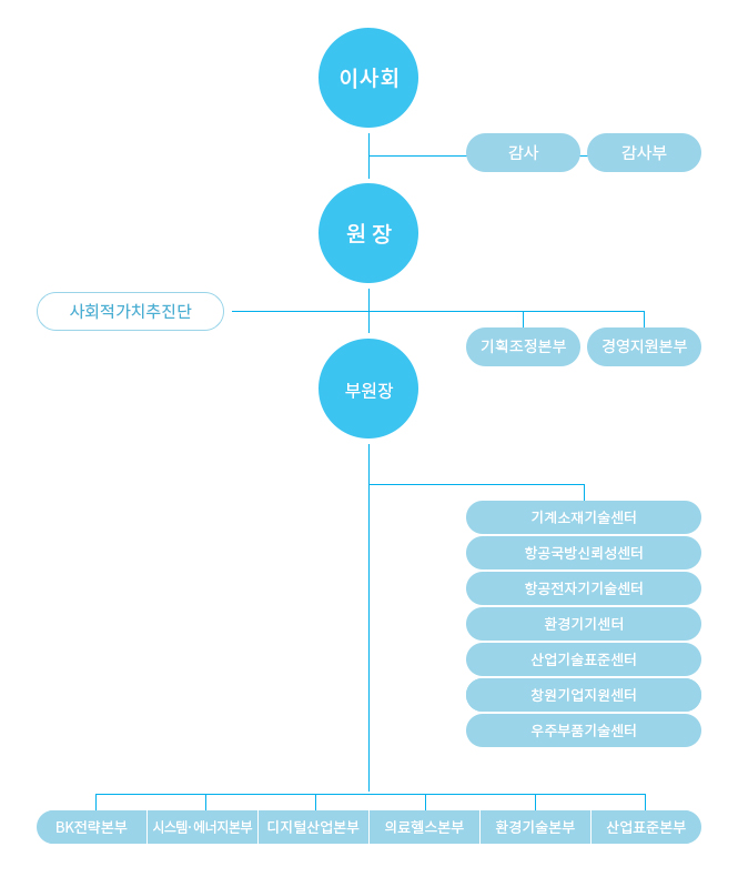이번 조직개편 중 가장 큰 변화는 전사적인 차원에서 사업전략 기능을 대폭 확충했다는 점이다. 칸막이식 시험인증 사업구조를 융복합기술 및 4차 산업에 선제 대응하기 위해 기존의 인증산업본부를 BK전략본부로 재편하고, 사업전략센터·고객지원총괄센터·글로벌마케팅센터를 설치해 사업전략기능을 대폭 확충했다. 또한 사업본부별 미래사업과 고부가가치 사업개발을 위한 전담 사업개발조직을 확충하고, 4차 산업 관련 융·복합 첨단 시험평가사업을 수행하는 조직도 단계적으로 늘릴 계획이다.