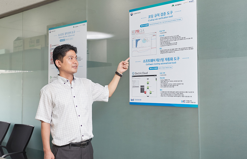 이용윤 의료기기는 엄격한 규제를 거치기 때문에 제품을 만들었다고 해서 바로 판매할 수 있는 것이 아니라, 시험평가를 의무적으로 해야 합니다. 요즘 개발되는 전자 의료기기 대부분에는 소프트웨어가 장착되어 있어 의료기기 인허가 획득에 소프트웨어 밸리데이션 자료는 필수적입니다. 이에 디지털 헬스케어 소프트웨어 시험평가센터에서는 소프트웨어 밸리데이션 수행에 어려움을 겪는 국내 의료기기 제조업체를 돕고 있습니다. 구체적으로는 소프트웨어 시험평가 장비 구축, 소프트웨어 시험평가 기술 개발, 소프트웨어 밸리데이션 기술지도를 수행하고 있습니다.
