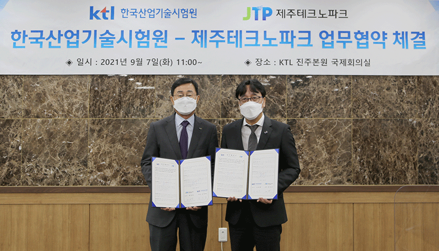 국내 유일 공공 종합시험인증기관 한국산업기술시험원(이하 KTL, 원장 김세종)은 제주테크노파크(이하 제주TP, 원장 태성길)과「사용 후 배터리* 산업 발전 및 기술협력을 위한 업무협약」을 체결했다고 9월 7일(화) 밝혔다.