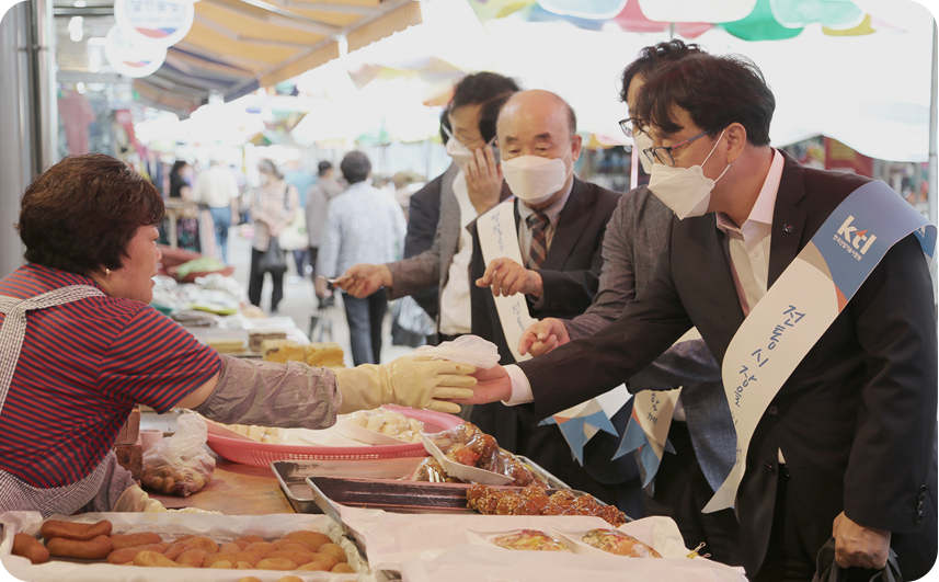 KTL은 이번 구매 약정식을 통해 지역 전통시장 등*에서 벌꿀, 멸치, 포도, 사과 등 지역특산품 약 9천만 원어치(누적 금액 약 10억 3천여만 원)를 추석 선물로 구매하여 지역 전통시장과의 소중한 인연을 계속 이어나가고 있다.