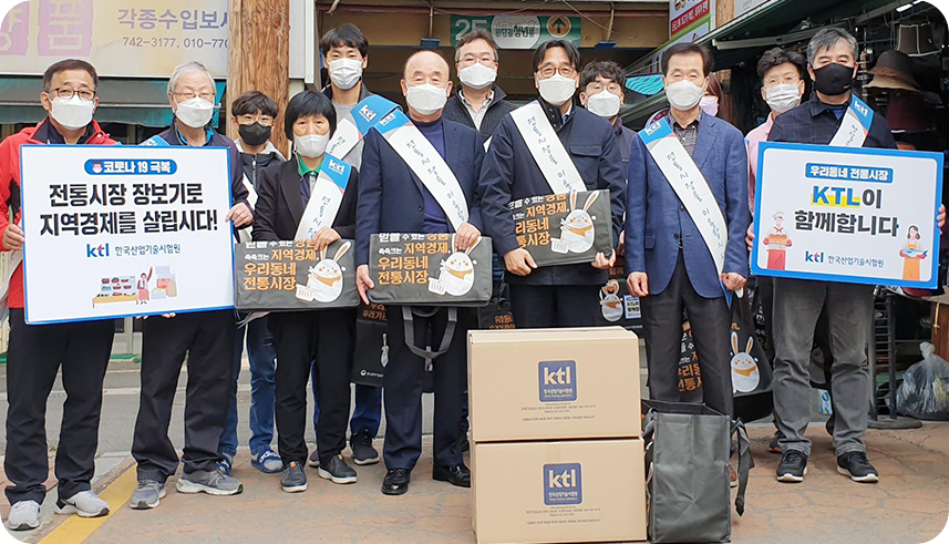 한국산업기술시험원(KTL)은 10월 24일 코로나19 장기화로 침체된 전통시장 활성화를 위해 ‘우리 동네 전통시장 가는 날’ 행사를 진행했다.