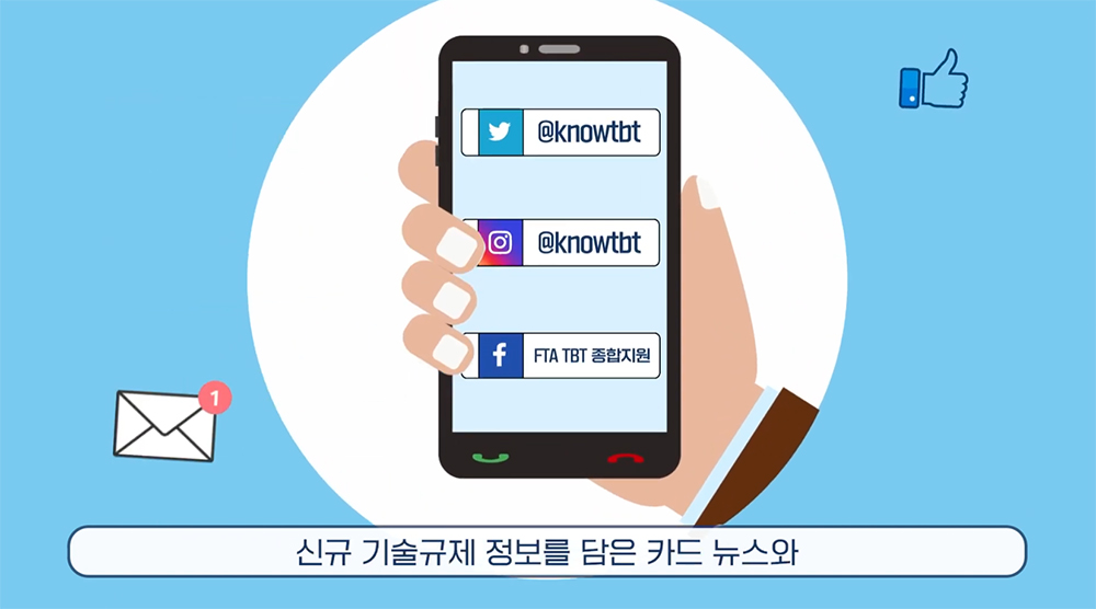 KnowTBT 포털과 SNS를 통해 기존 제공되고 있던 중국 TBT 정보 외에도, 신남방 국가들의 정보를 확대 및 통합 제공하며 TBT 정보 제공 플랫폼으로써의 역할을 강화하고 있다. 중국과 신남방 TBT 정보는 모두 KnowTBT 포털사이트를 통해 확인할 수 있고, 다양한 SNS 공식 채널을 통해 신규 기술규제 정보를 담은 카드 뉴스와 여러 교육·설명회 소식 등을 빠르게 확인할 수 있다.