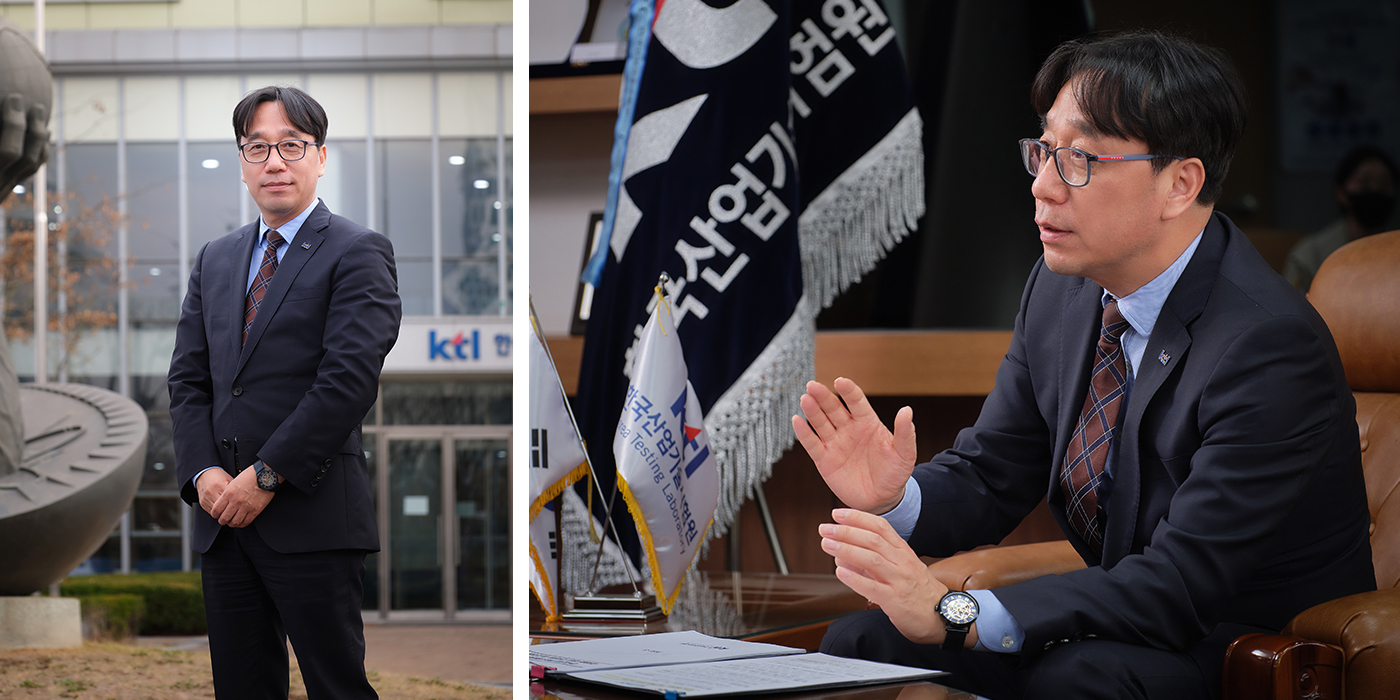 KTL이 기관 창립 56주년을 맞았다. KTL은 산업 디지털 대전환과 저탄소 실현을 위한 AI, 5G, 미래 모빌리티 등 미래 신성장 동력 구축 확보에 노력하고 진주 항공전자기기술센터 개소와 천안 이차전지 시험평가 기술 지원 확대 등 국토 균형 발전 지원을 위한 지역별 핵심 특화사업에 집중하고 있다. KTL이 세계적인 시험인증기관으로 나아갈 수 있도록 기관장 취임 후 1년이라는 시간 동안 KTL 식구들과 함께 힘찬 행보를 보였던 김세종 원장을 만났다.
