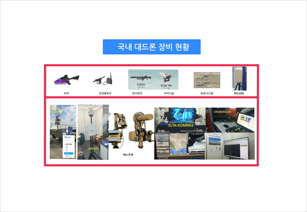 국내 대드론 장비 현황 : ADE, 삼정솔루션, 담스테크, 두타기술, 유콘시스템, PFCORE, 에스코넥