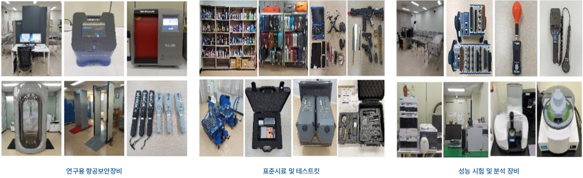 | 건축 및 인프라 | 화학물질 분석 및 시험평가실/수하물 이송설비/환경(온·습도) 시험평가 챔버/내구성·신뢰성 시험평가실/금속탐지장비 시험평가실/화학물질 보관저장소 | |