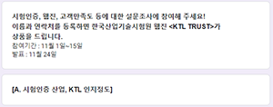 시험인증, 웹진, 고객만족도 등에 대한 설문조사에 참여해 주세요!