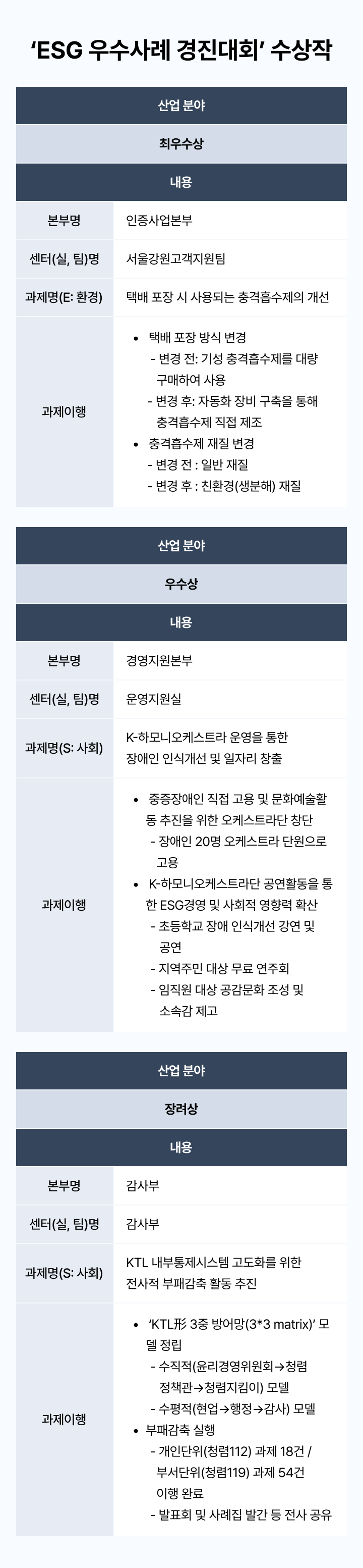 ‘ESG 우수사례 경진대회’를 개최하고 최우수, 우수, 장려 3개 사례를 선정해 시상했다.