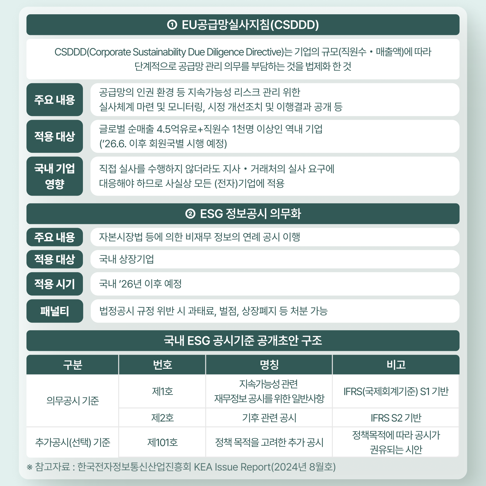 2024년 7월 발효된 ‘기업의 지속가능한 공급망 실사지침(CSDDD)’을 비롯해 우리 기업들이 주의해야 할 다양한 환경・ESG 규제에 대해 알아보자.
