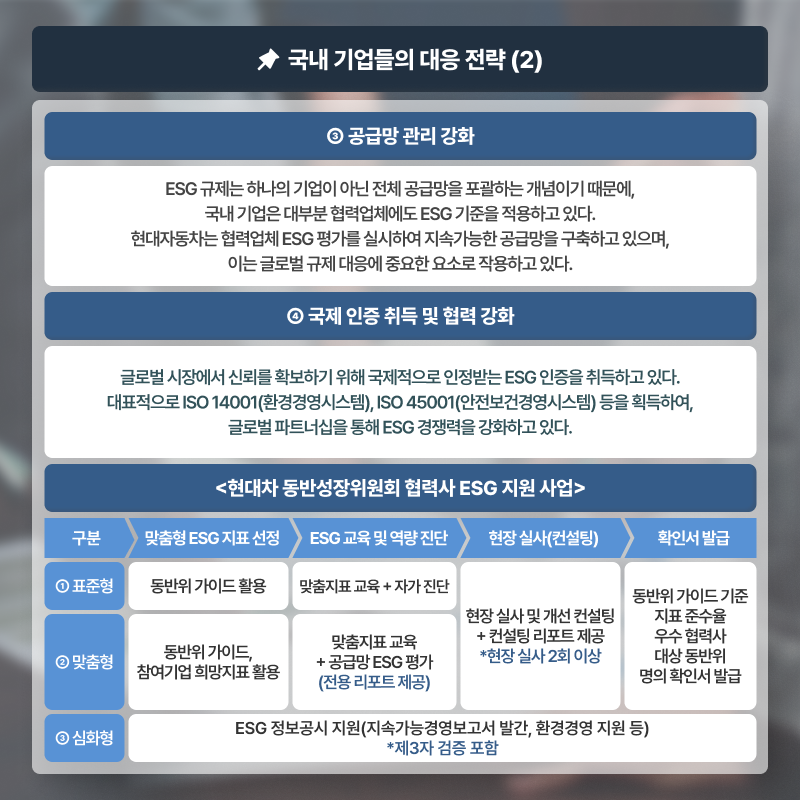 특히 EU의 ESG 규제 강화는 글로벌 공급망을 구성하는 모든 기업의 도전과제가 되고 있는 상황. 현재 우리 기업들은 이러한 시대 흐름에 잘 대처하고 있을까?